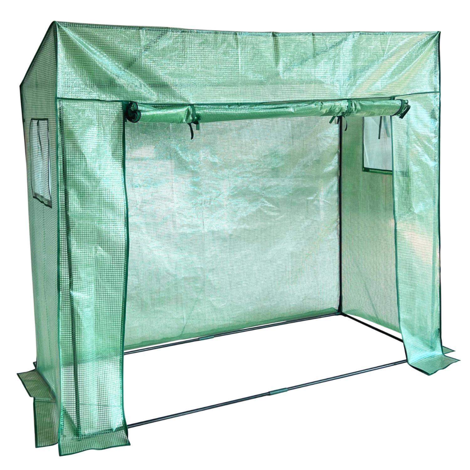 Drivhusdrivhus med rulledør 100x50x150cm av stål og plast i grønt for plantestell og dyrking