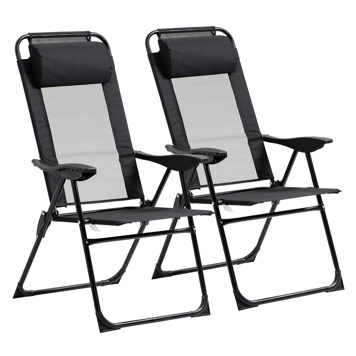 Sett med 2 sammenleggbare hagestoler med justerbar rygg og armlen, campingstol med en bæreevne på opptil 120 kg for hage og balk