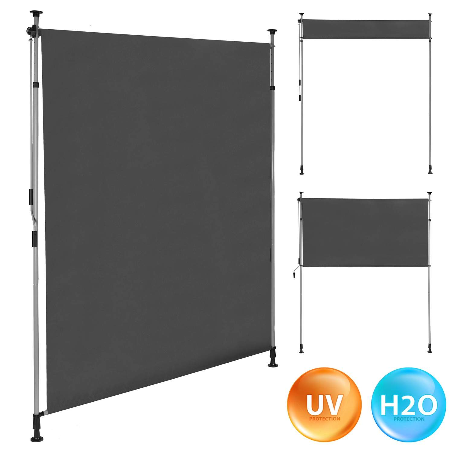 Clamp-On uttrekkbar markise med sveiv, høydejusterbar, antrasitt MultiGarden