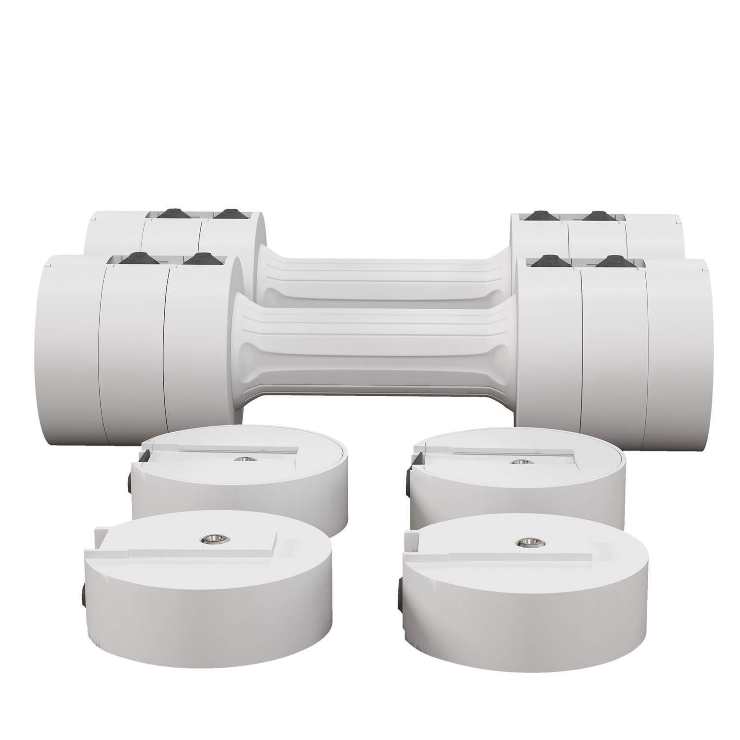 2 x 2,5 kg manualer, justerbar vekt manualer, 1,1/1,8/2,5 kg per manual, gulvvennlig plasthus, for kvinner og menn, hvit