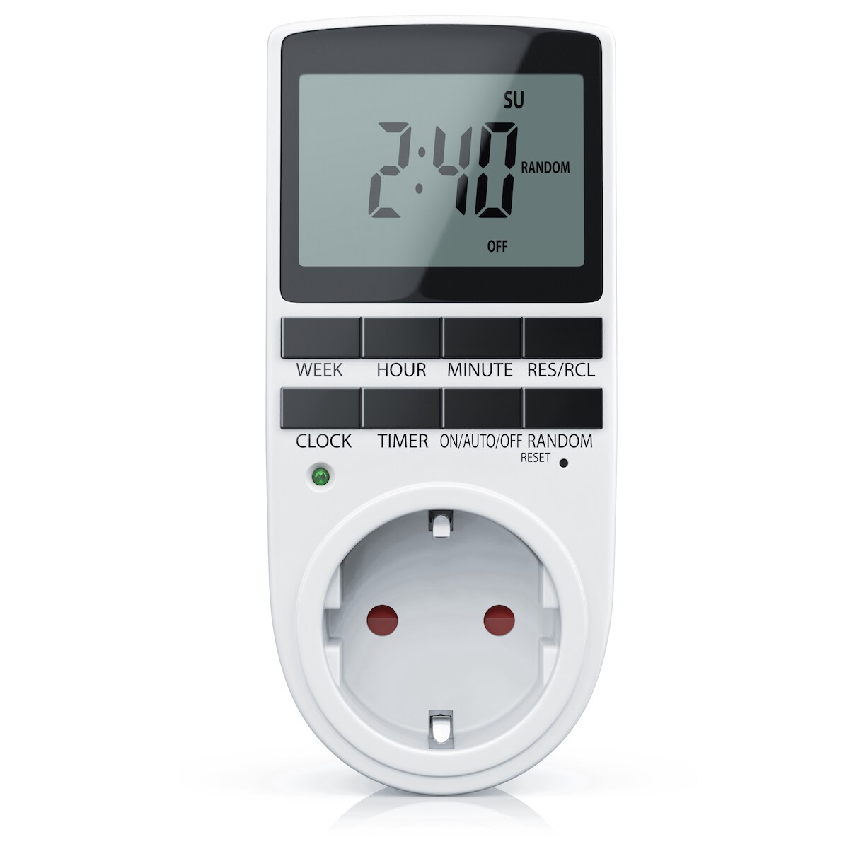BEARWARE Zeitschaltuhr digital - 2,1 LCD-Display 5,3 cm - 3680W - Digital-Zeitschaltuhr mit 10 konfigurierbaren Programmen - Back-Up Reserve-Akku