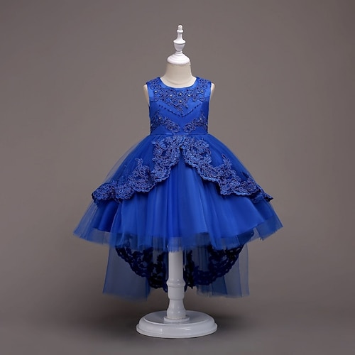 Abito da damigella d'onore bambina Ragazze Abito formale Abiti da sposa Feste Matrimonio Formale Moda Formale Dolce Abito per la Prima Comunione Ricamato Rete Tinta unica Senza Maniche Girocollo Blu