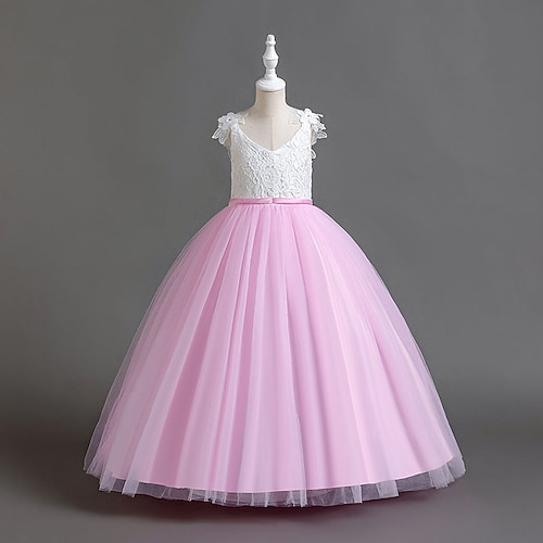 Abito da damigella d'onore bambina Ragazze Abito formale Abiti da sposa Feste Matrimonio Formale Adorabile Principessa Bello Abito per la Prima Comunione Patchwork Rete Tinta unica Senza Maniche A V