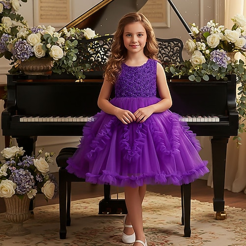 Abito da damigella d'onore bambina Ragazze Abito formale Abiti da sposa Feste Matrimonio Formale Moda Essenziale Principessa Abito per la Prima Comunione Rete Tinta unica Senza Maniche Girocollo