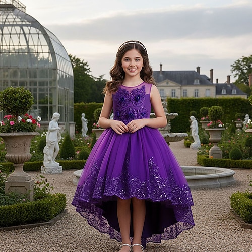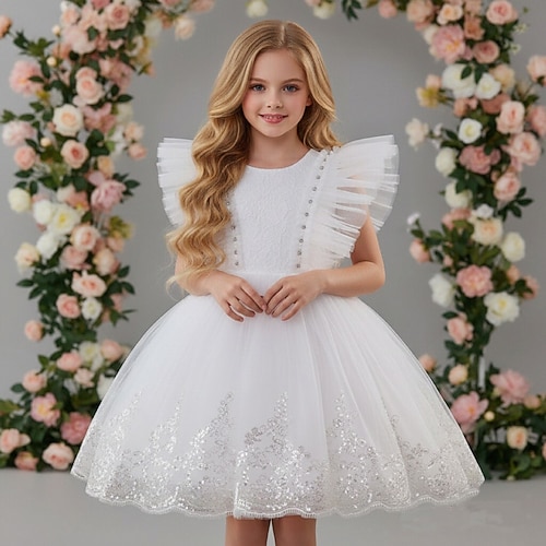 Abito da damigella d'onore bambina Ragazze Abito formale Abiti da sposa Feste Matrimonio Formale Moda Adorabile Principessa Abito per la Prima Comunione Paillettes Rete Tinta unica Senza Maniche