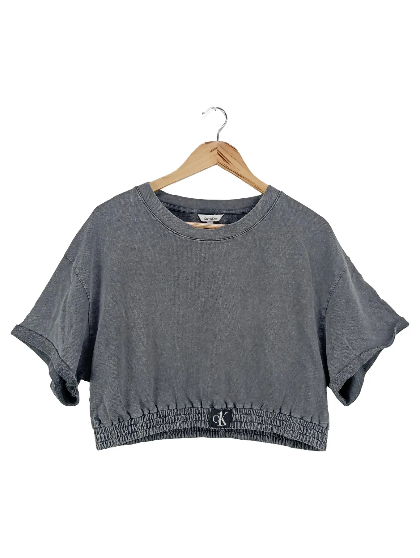 CALVIN KLEIN T-Shirt Damen L grau Baumwolle