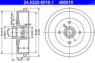 Ate Bremstrommel Hinterachse [Hersteller-Nr. 24.0220-0018.1] für Audi, Seat, VW, Skoda