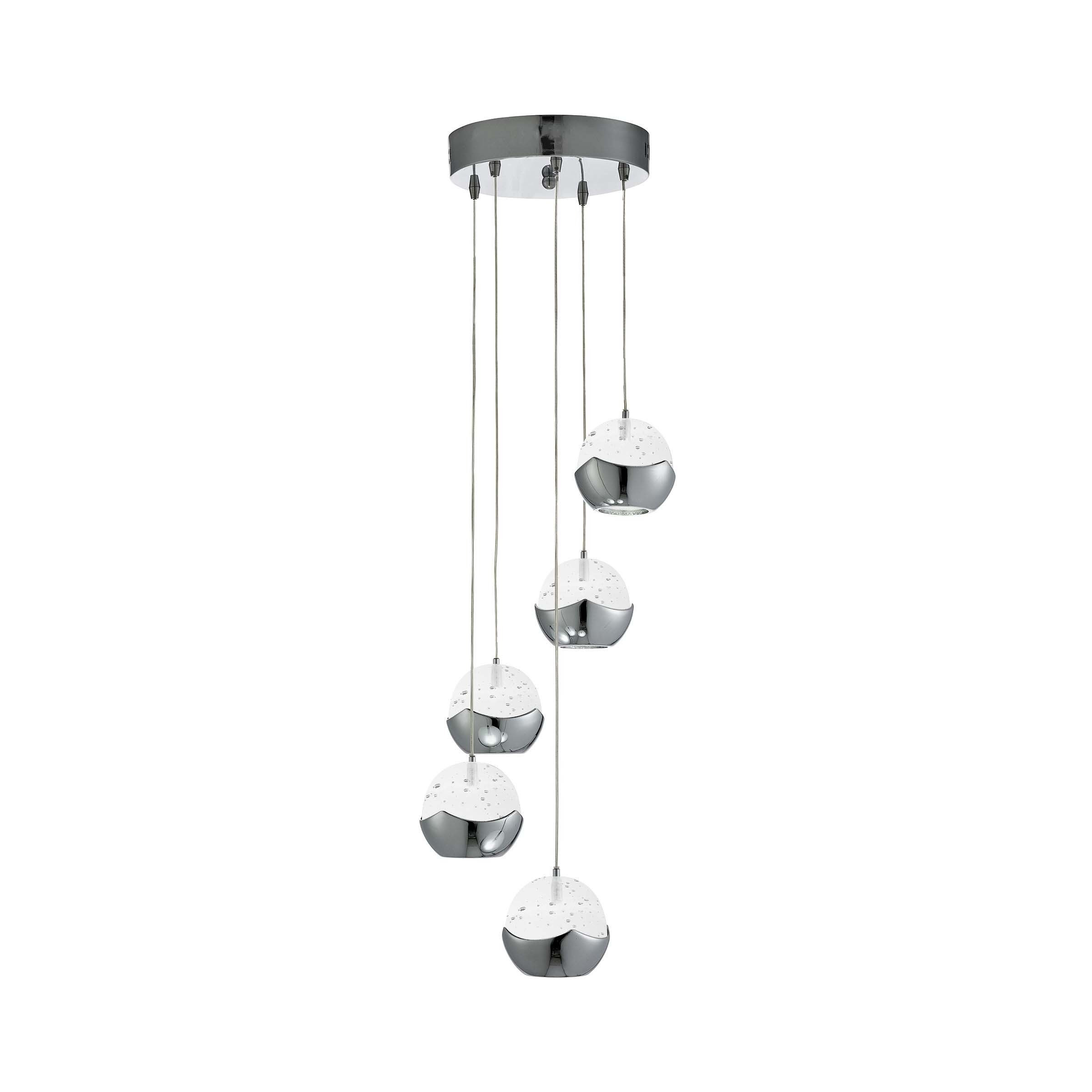 Searchlight Ice Ball - Pendelleuchte - Ø 26 x 102 cm - 5 x 6W dimmbare LED inkl - chrom und transparent