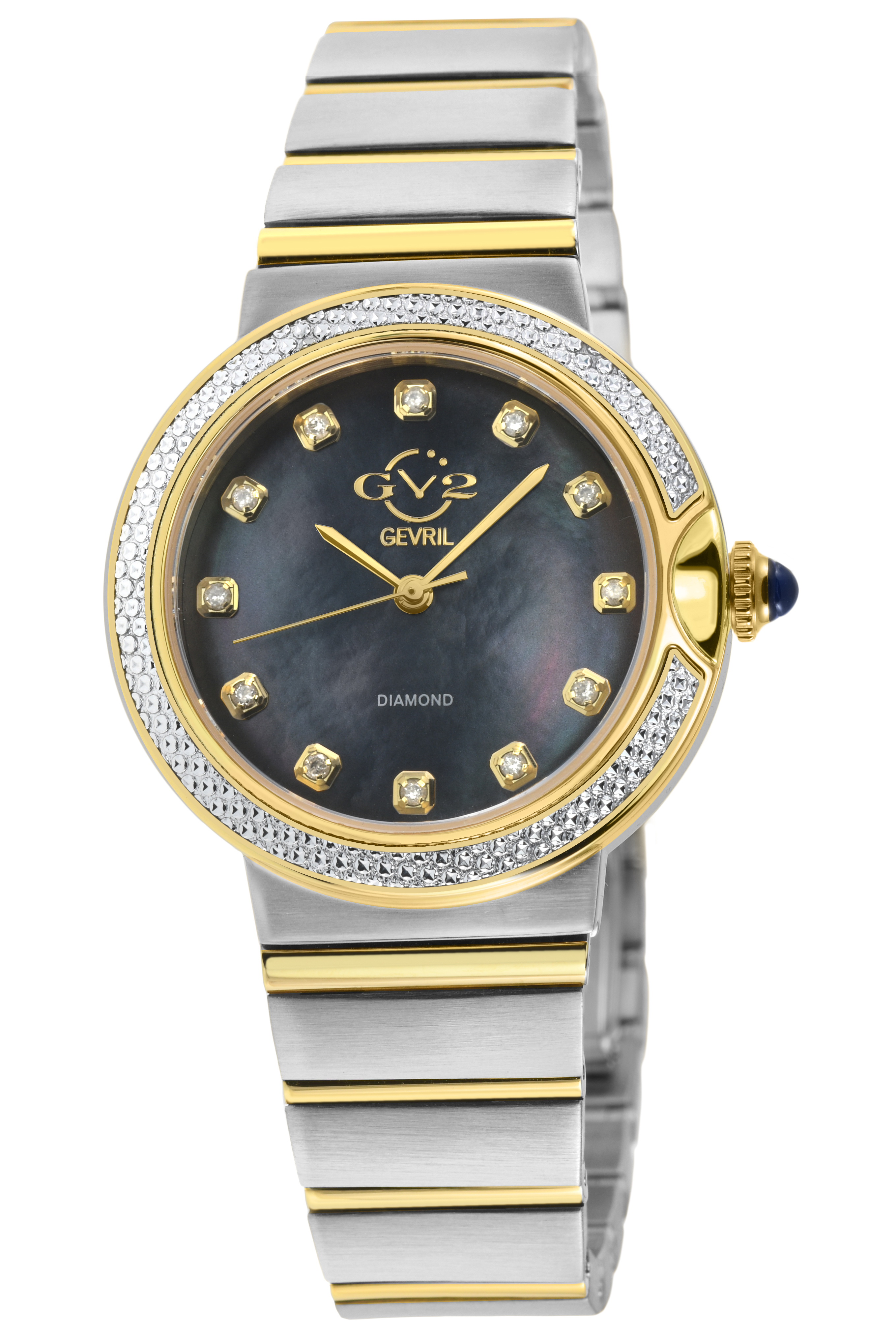 Gv2 Womens Sorrento Diamond, 316L Stainless Steel Case, Black Mop Dial, Watch - Silver & Gold - One Size | Gv2 Sale | Discount Designer Brands