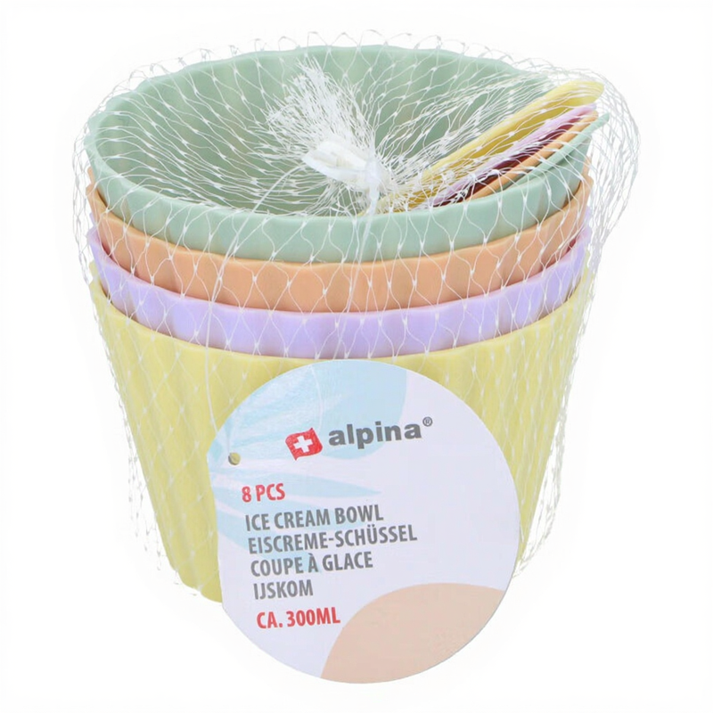 Alpina Lot de 8 bols à crème glacée, cuillère incluse