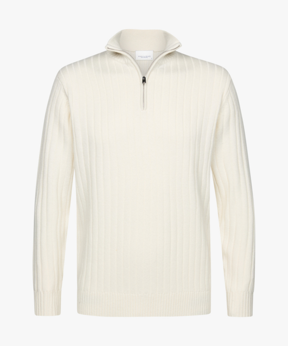 Profuomo Ripp Half-Zip Pullover Gr. M in weiß | 50% Wolle