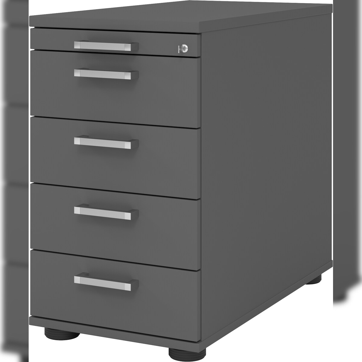 bümö Schreibtisch Schrank abschließbar, Schubladenschrank Holz in graphit, Container mit Schubladen - Schubladen Schrank Büro, Schreibtisch Container