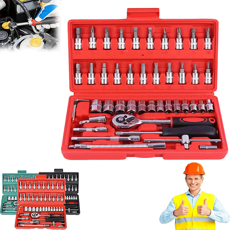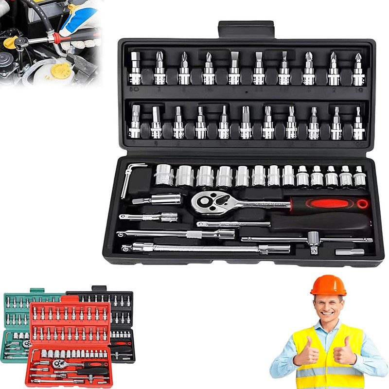 Cordless Slim Ratchet Set, 1/4 inch Drive Socket Ratchet Wrench Set, 46pcs Ratchet Wrench Kit, Portable Mechanics Tool Kit with Ergonomic Grip, Compact Case for Home, Car, Bike, Motorcycle Repairs