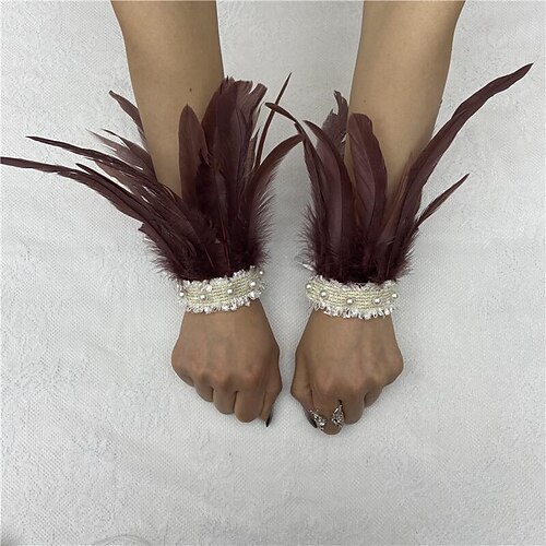 Accessori Samba Carnevale 2026 Rio Carnevale Polsini Piume Nere Donna con Nastro Ricamato Vintage Costume per Festival in Brasile