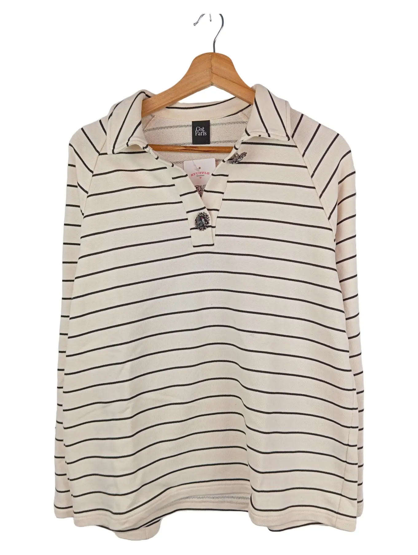 CEST PARIS BY CEST TOUT Cest Paris Pullover Beige Schwarz Gestreift Baumwolle Gr. 36