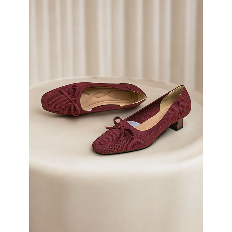 Women's Flyknit Low Heel Bowknot Pumps – Breathable Lightweight Comfort Shoes for Office, Work and Casual Wear