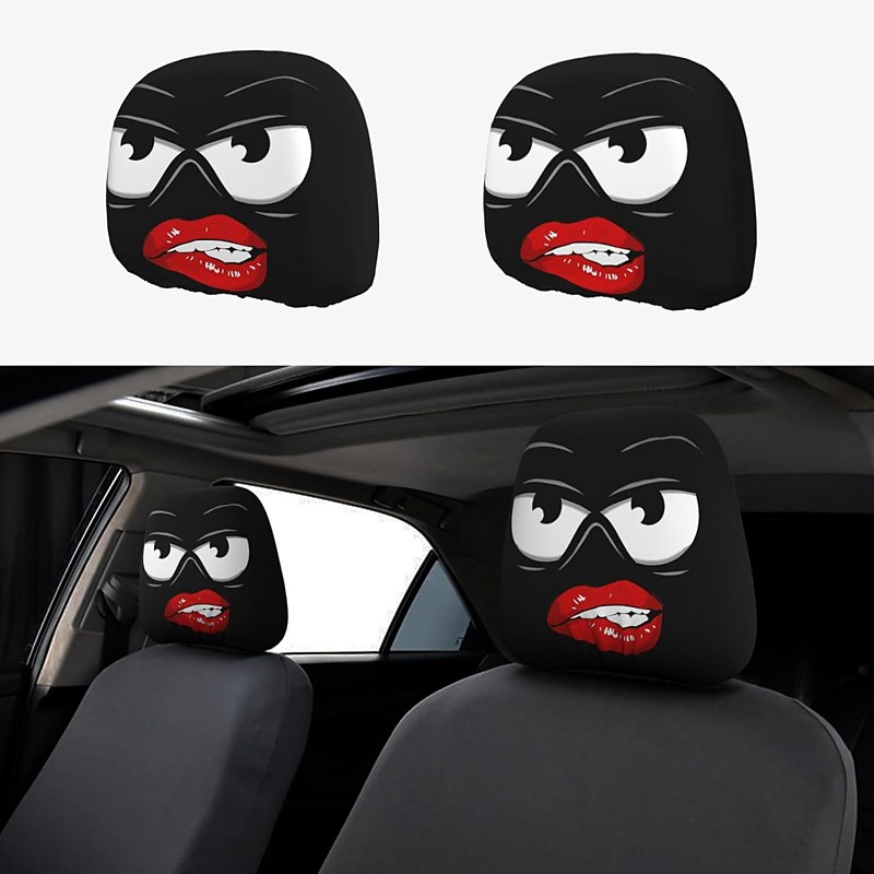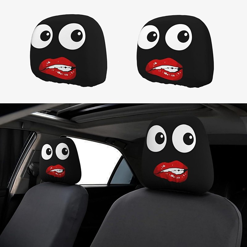 2pcs Funny Lips Print Car Headrest Covers, Neck Pillow and Lumbar Support Cushion, Soft and Fluffy, All-Season Use, Suitable for Long Distance Driving, Daily Commuting, Business Travel, In-Car Rest