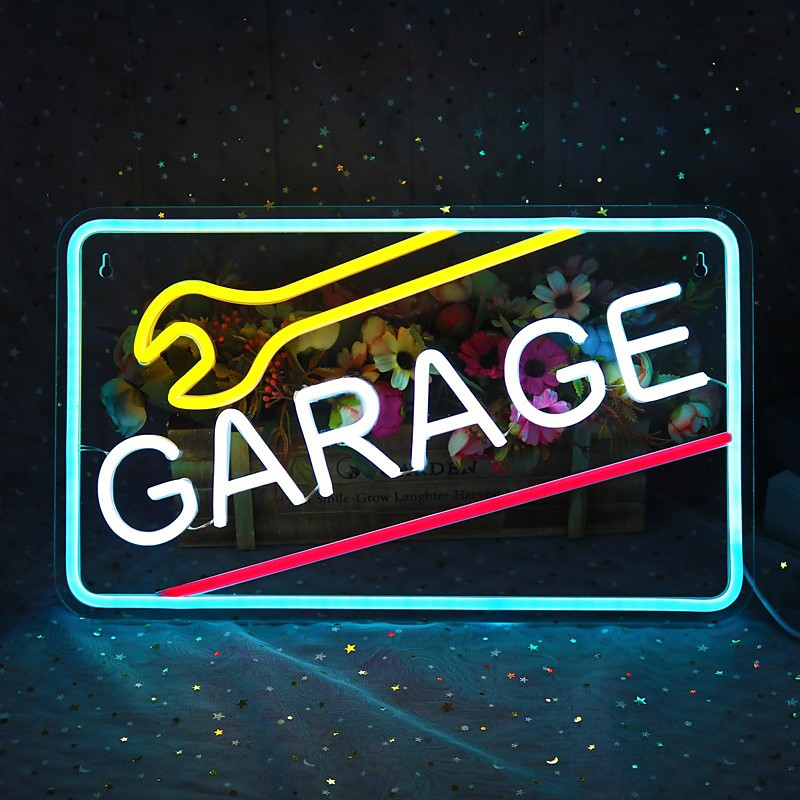 1 Pc garage repair tool LED shaped acrylic backboard neon wall light atmosphere light wrench shaped decorative light Usb power supply adjustable dimming