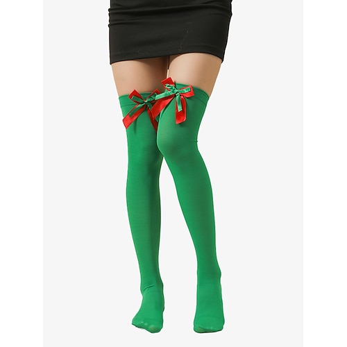 calzini natalizi alti fino al ginocchio con fiocco e pompon – colori a righe e tinta unita per le feste per donne e ragazze