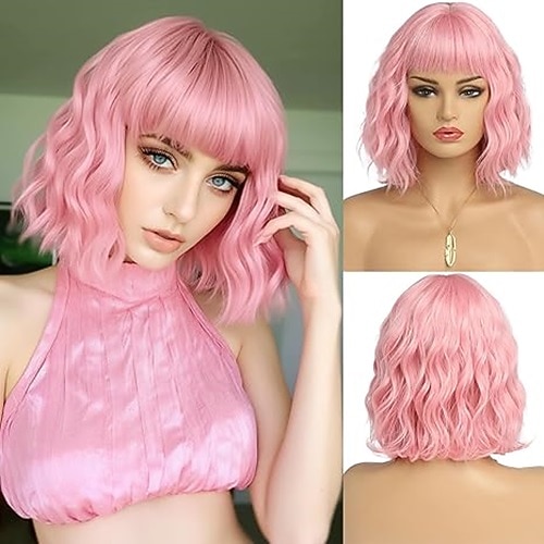 parrucche corte per donne parrucche caschetto con frangia parrucche sintetiche ondulate parrucche natalizie