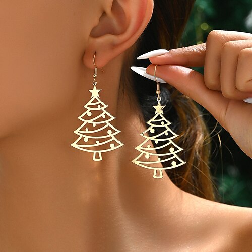 orecchini pendenti a forma di albero di Natale in oro - gioielli festivi per le donne, orecchini con decorazioni natalizie