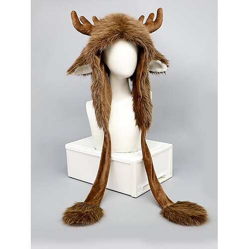 Cappello unisex natalizio a forma di renna – comodo cappello in pelliccia sintetica con corna e paraorecchie – accessorio perfetto per le feste per uomini e donne – materiale in poliestere