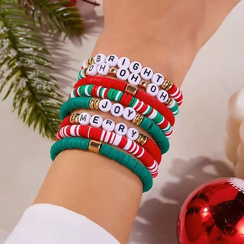 set di braccialetti di perline natalizie: braccialetti natalizi rossi, verdi e bianchi con lettere allegre, gioiose e luminose per le donne