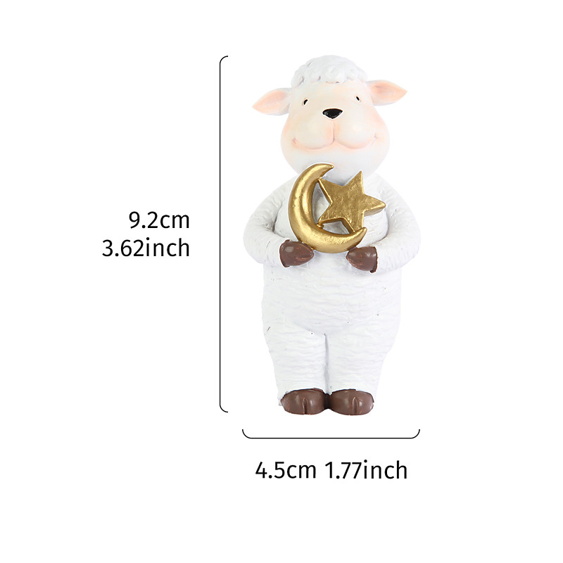 Ramadan Cute Black White Sheep Resin Figurines Holding Star and Moon, Festive Home Decor for Eid al-Fitr, Eid al-Adha, Tabletop Ornament Gift