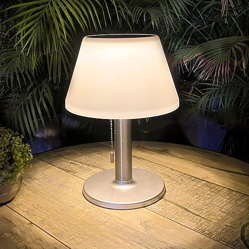 Lampada da tavolo solare per esterni e interni - 3 modalità di illuminazione, lampada da scrivania solare a LED impermeabile e senza fili, con catena di trazione, per esterni, patio, giardino, camera