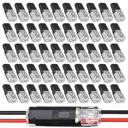 Doppelpoliger LED-Streifen-Steckverbinder mit 2 Pins und Verriegelungsmechanismus – Schnellanschluss, kein Abisolieren oder Schneiden erforderlich, 50 Stück