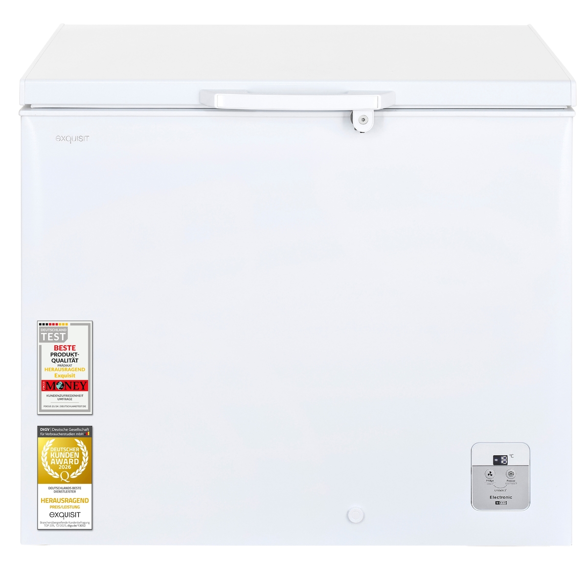 Exquisit Gefriertruhe GT220-HE-010A weiß | 217 l Nutzinhalt | Energieklasse A | Schnellgefrieren | LED-Anzeige | abschließbare Tür