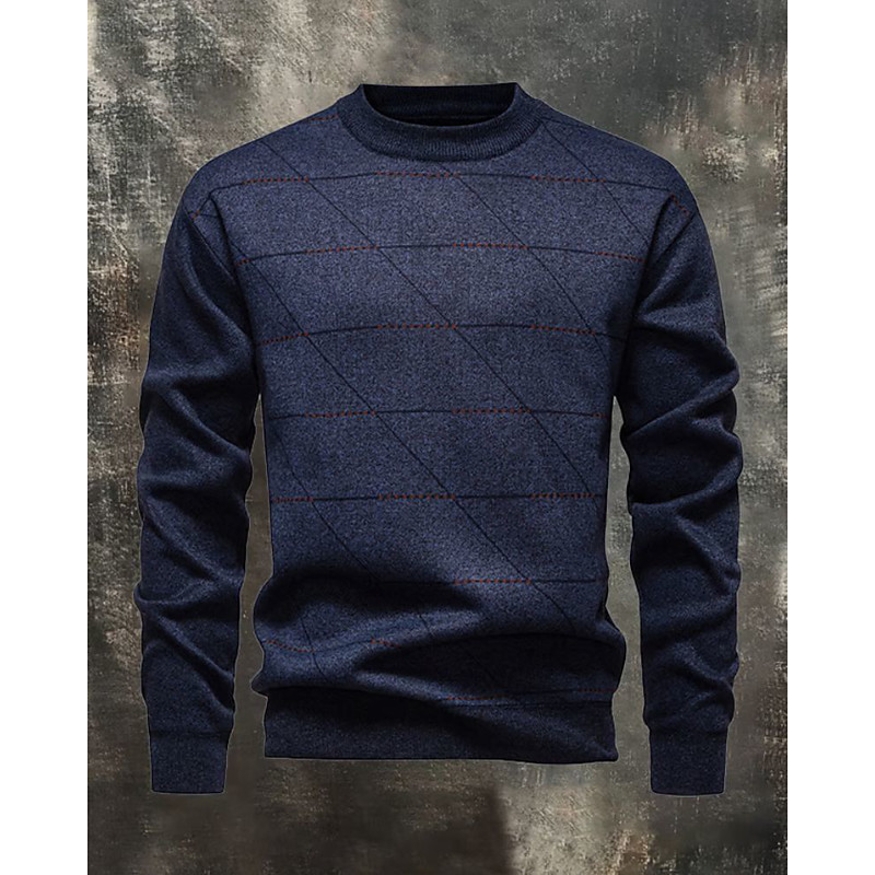 Men's Sweater Pullover Sweater Jumper Knit Sweater Ribbed Knit Regular Tops Knitted Plain Crew Neck Fashion Streetwear Casual Daily Wear Clothing Apparel Fall Winter Navy Blue Blue S M L
