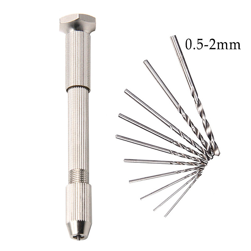 0.5-3mm Small Round Head Twist Drill Mini Micro Hand Drill Woodworking Drilling Tools Manual Twist Drill Bit Hand Tool Kit
