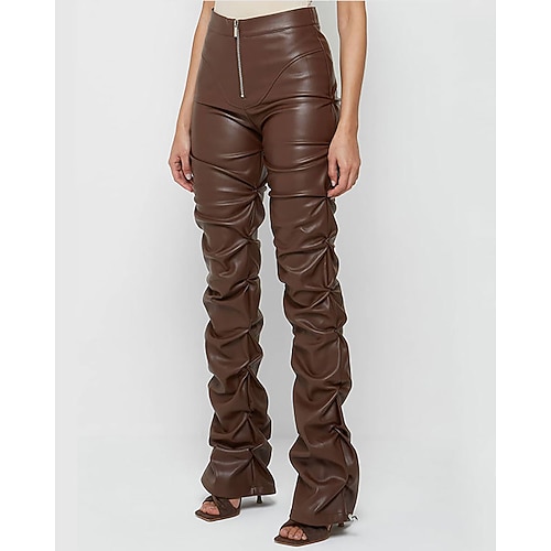 Per donna Pantaloni di pelle Moda Streetwear Casual Lunghezza intera Vita media Semplice Cerniera Tasca Confortevole Micro-elastico All'aperto Vacanza Quotidiano Bianco latte Verde translucido Nero
