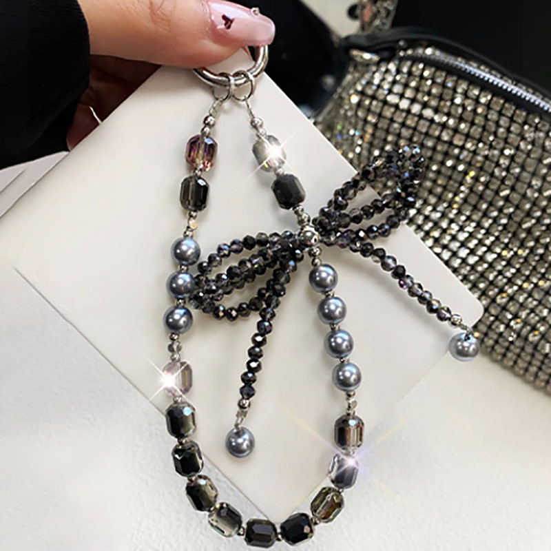 New fashionable crystal pearl mobile phone chain with high-end feel three-dimensional crystal pearl bow key hanging chain mobile phone hanging chain wrist chain