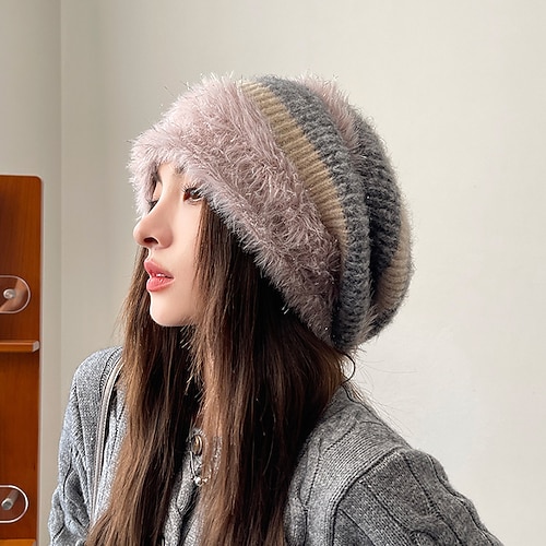 berretto morbido stile autunno inverno per donna copriorecchie in peluche cappello lavorato a maglia berretto caldo alla moda carino viso snellente copricapo premaman