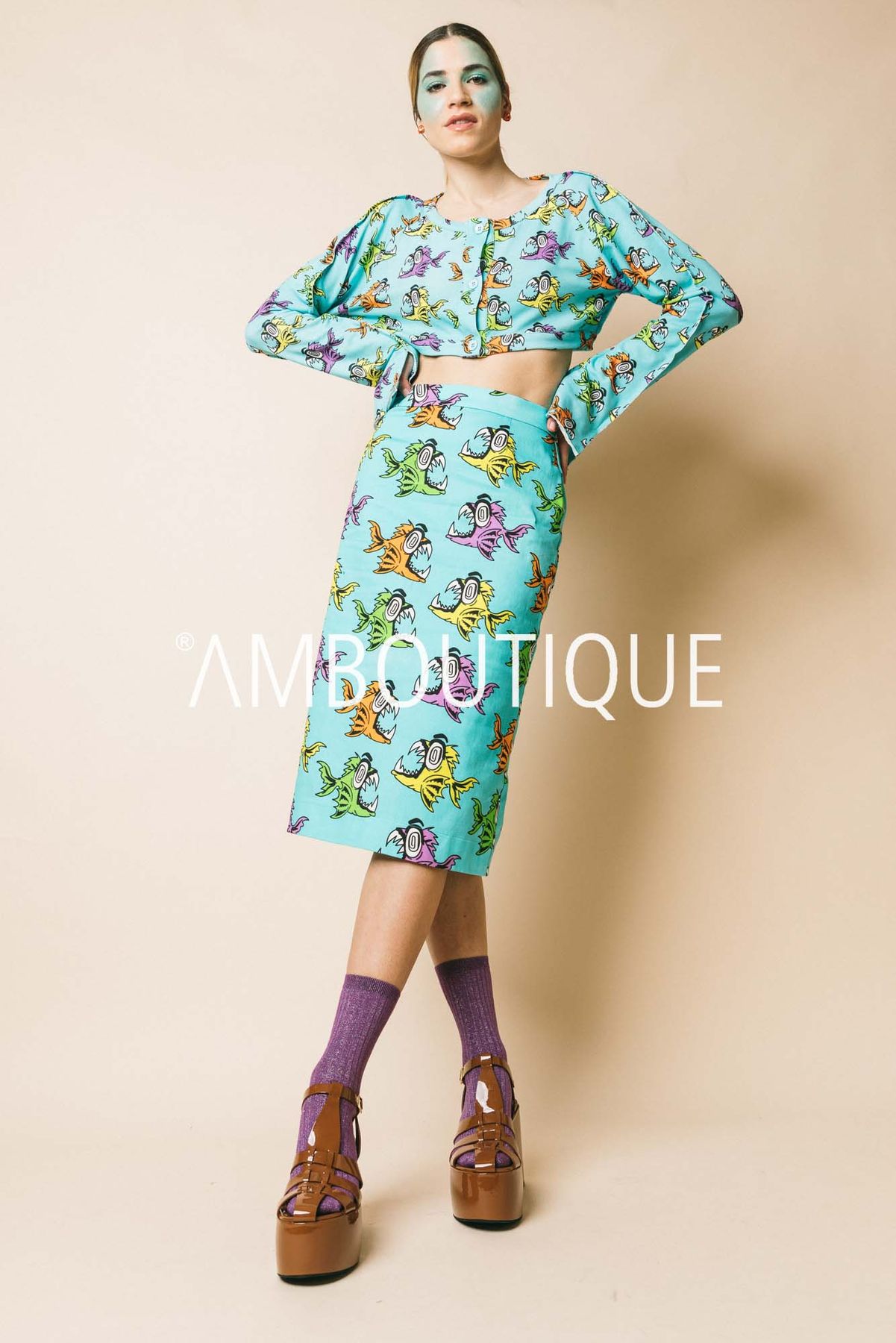Crop piranha maglieria white azzurro piranha, s