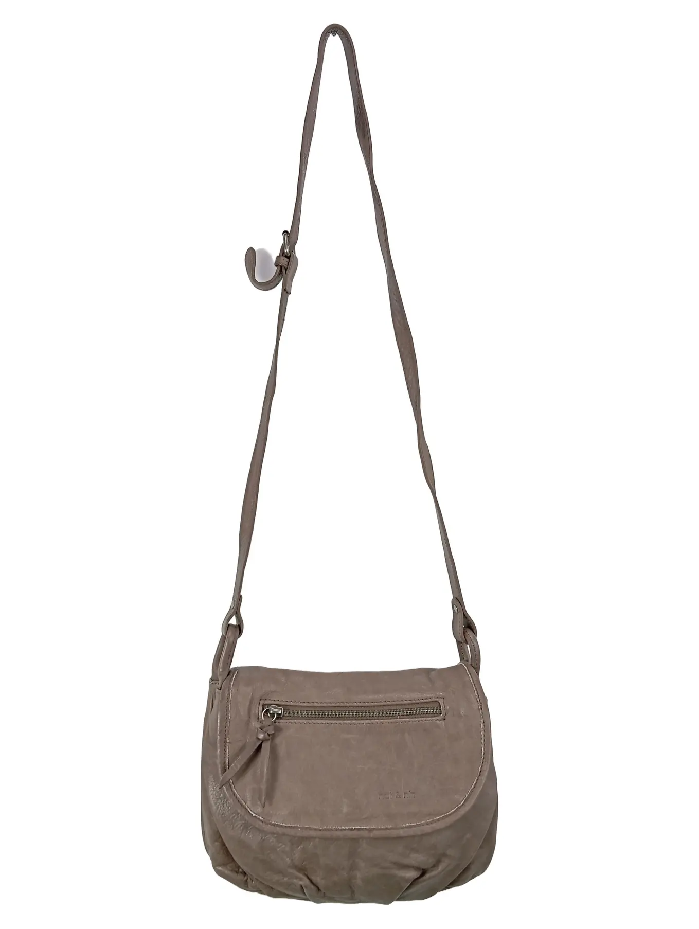 NAT & NIN Umhängetasche Damen Leder grau Vintage Elegant 22x27 cm Logo-Prägung