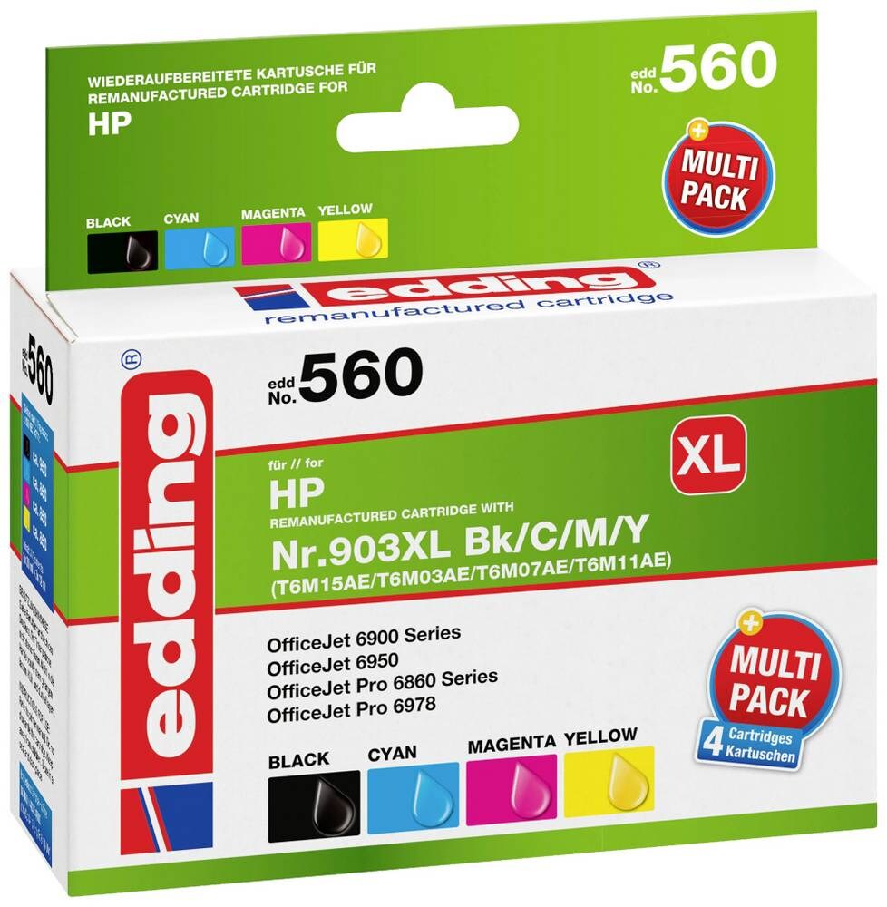 edding Tinte 560 XL, Multipack, ersetzt HP 903XL (3HZ51AE), Inhalt: 1x 30 ml + 3x 12 ml