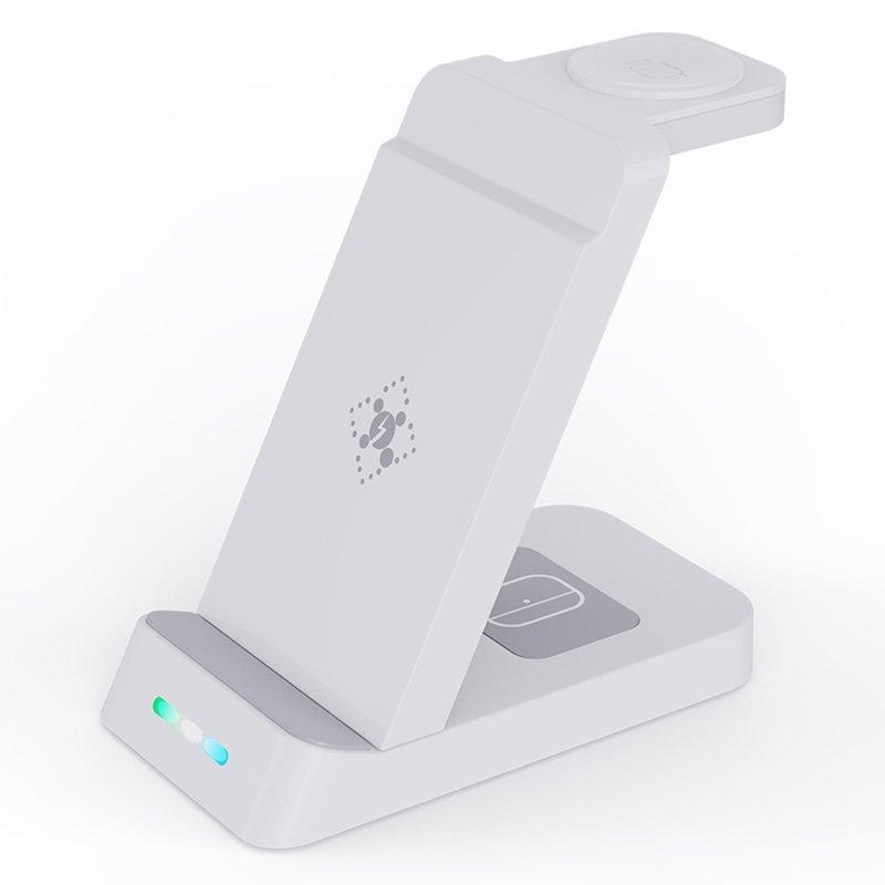 B-20A 3-i-1 Trådlös Laddare för Samsung Watch 3/4/5/6/7, Telefon, Hörlurar - Vit