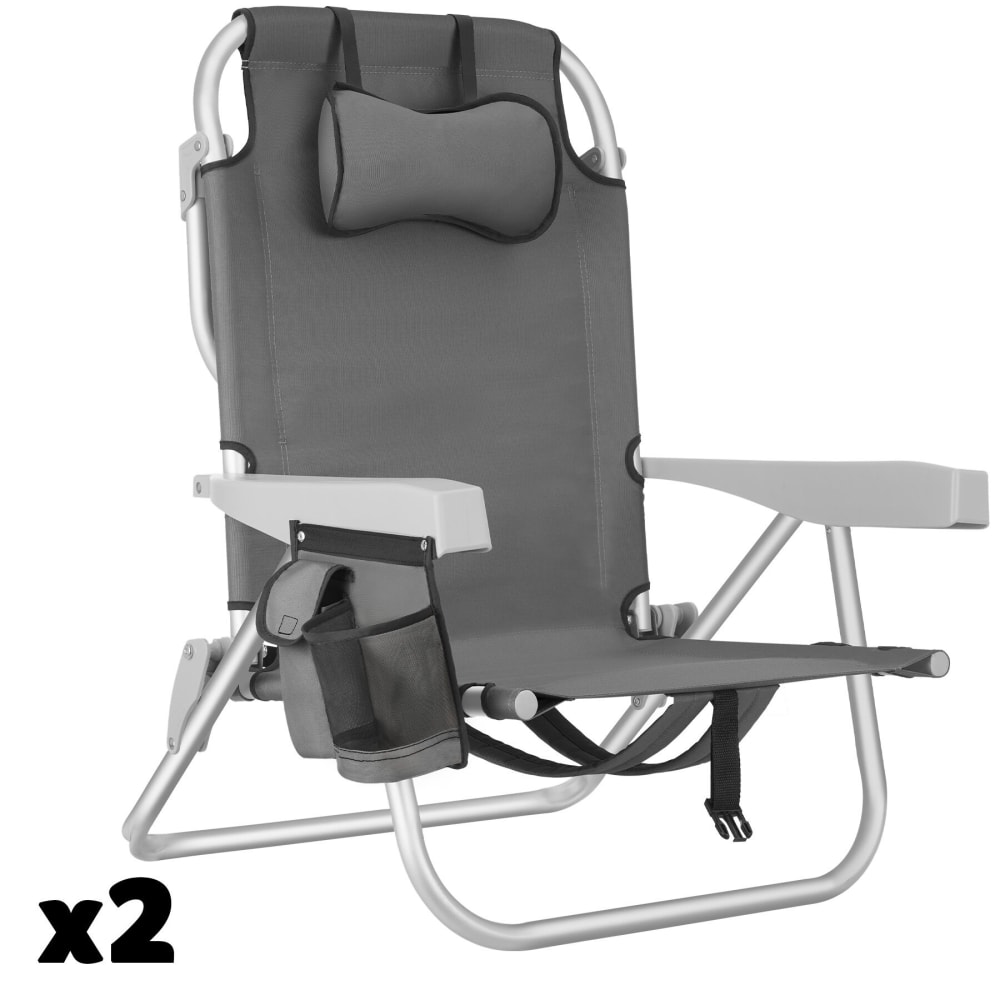 Sedia da spiaggia pieghevole con schienale regolabile grigio