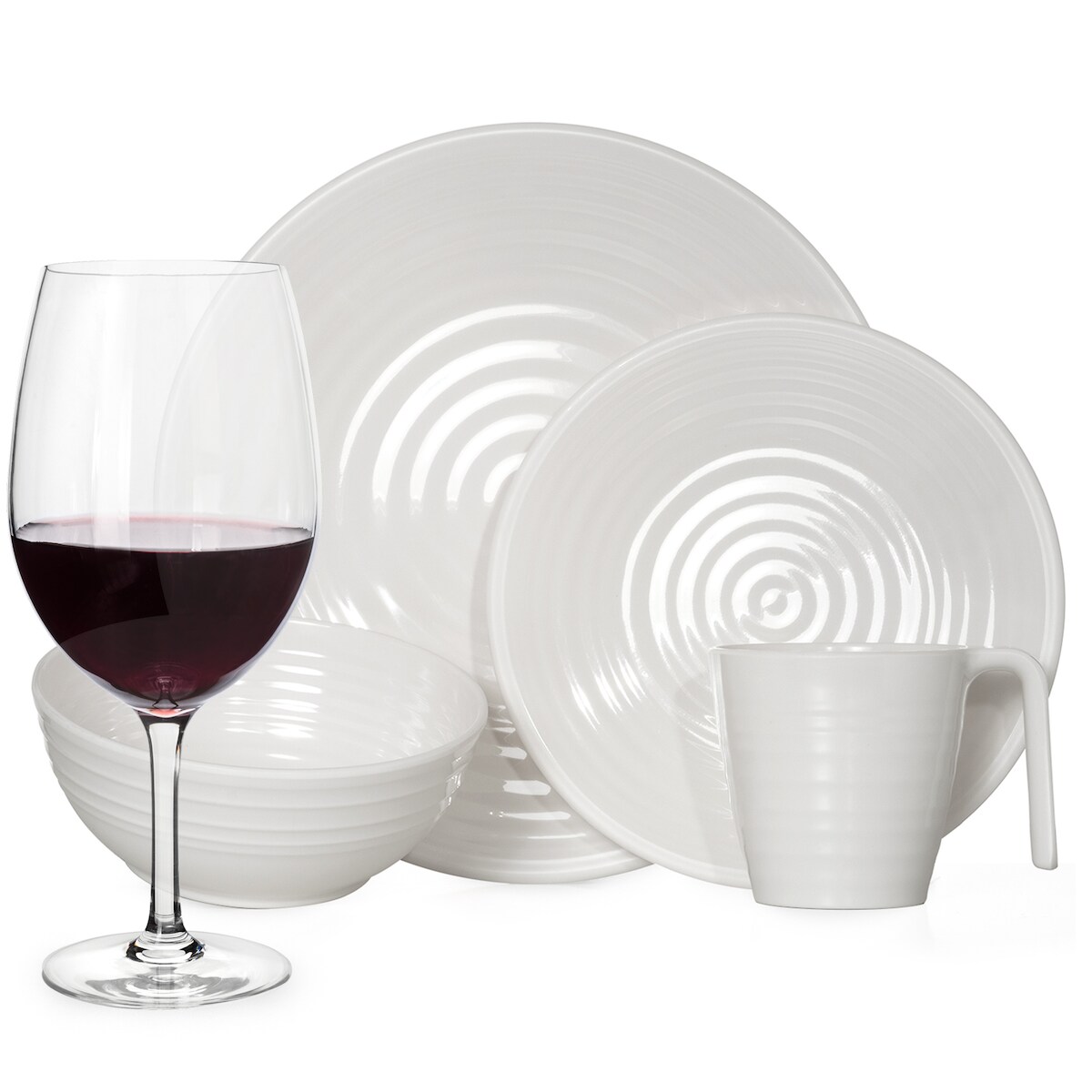 Moritz Melamin Geschirr Set 4 Personen Crema 16 Teilig + Tiamo Gläser Rot Weingläser Tafelgeschirr Picknick BBQ Kochgeschirr