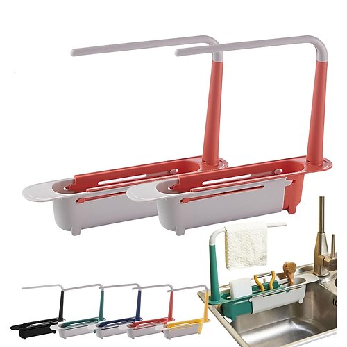 Teleskop-Spülbeckenablage, verstellbare Küchenspülen-Organizer-Ablage, ausziehbarer 2-in-1-Teleskop-Spülbeckenabtropfer, Schwamm-Seifenhalter für Küchenutensilien