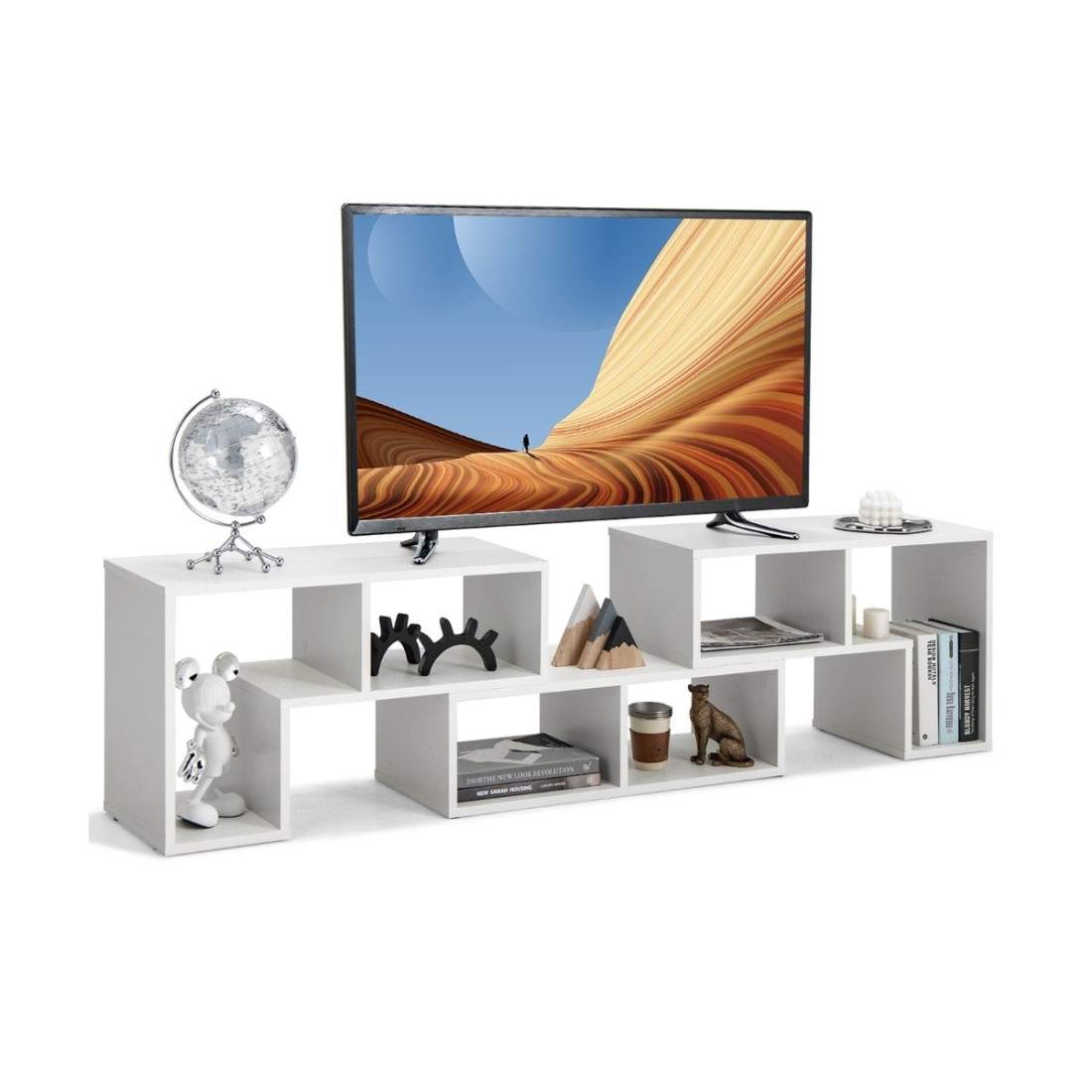 3-osainen puinen TV-kaappi televisioille 65" asti Vapaasti yhdistettävä valkoinen TV-taso
