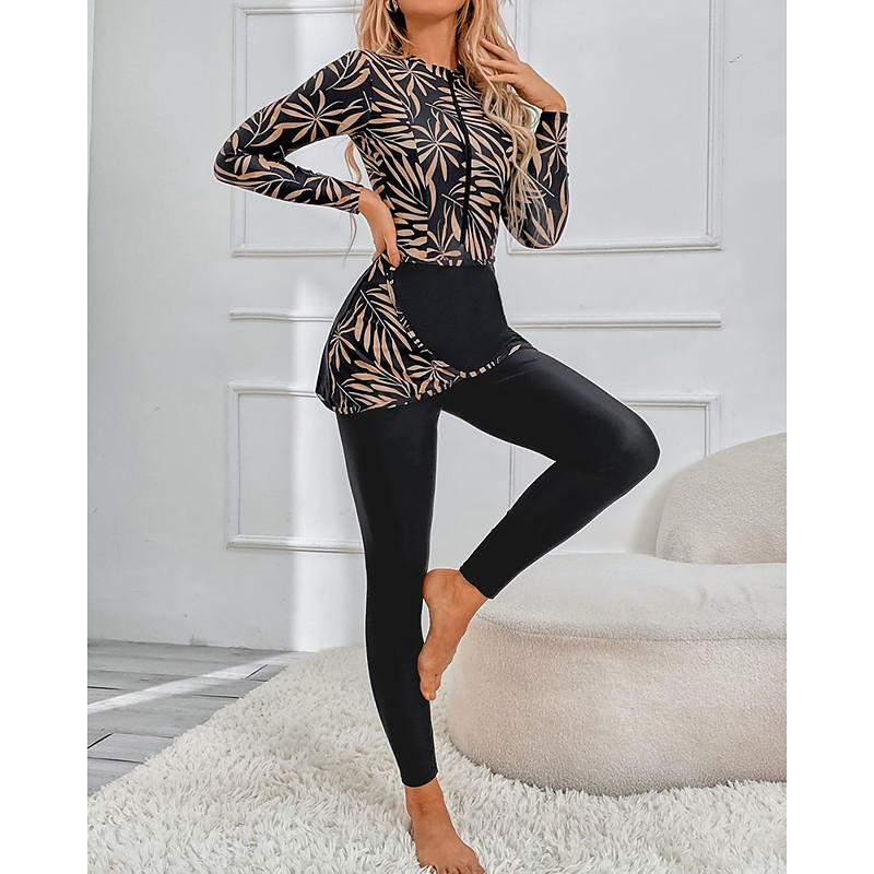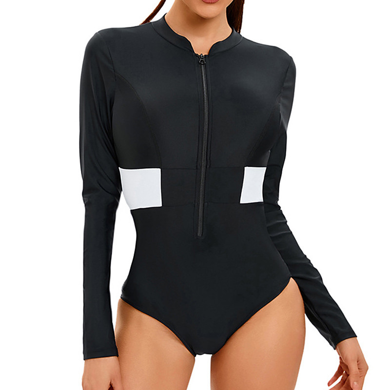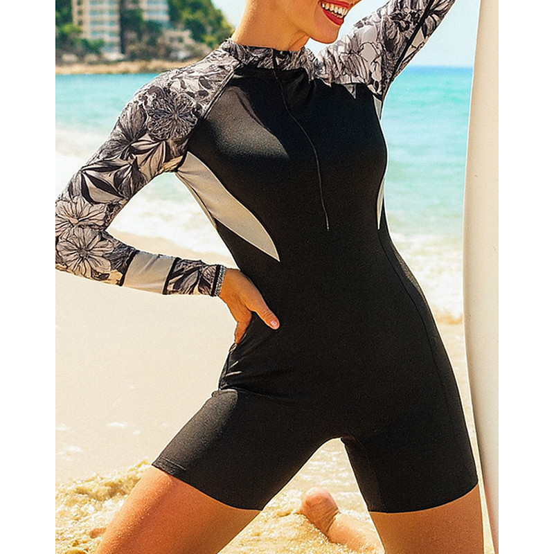 Women's Rash Guard Bathing Suit One Pieces Printed UV Protection Elastic Long Sleeve Swimwear Zip Up Surfing Beach Swimming Summer