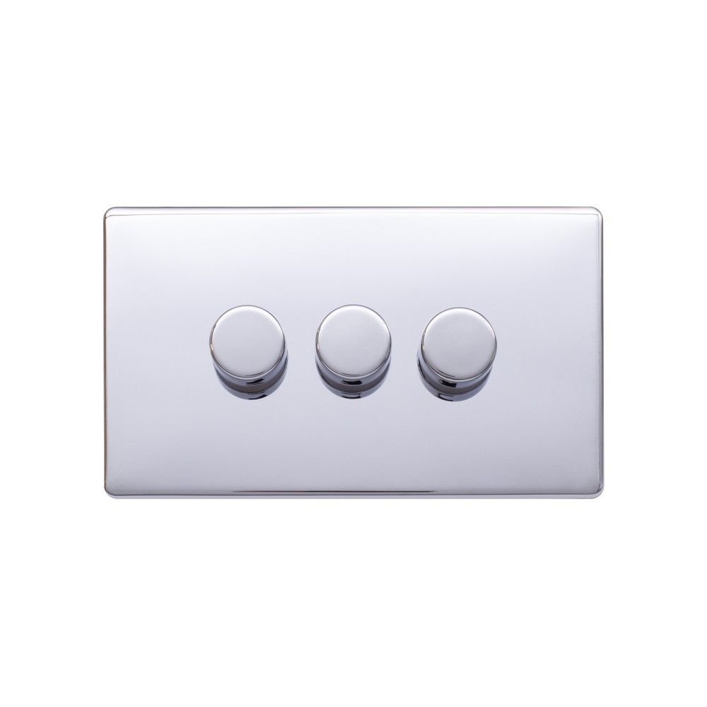 Soho Lighting Brushed Chrome 3 Gang Switch with 1 Dimmer (1x150W LED Dimmer 2x20A 2 Way Toggle)