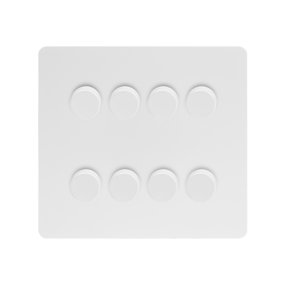 Lieber Silk White 8 Gang 2 -Way Intelligent Dimmer LED 150W LED (300w Halogen/Incandescent) - Curved Edge