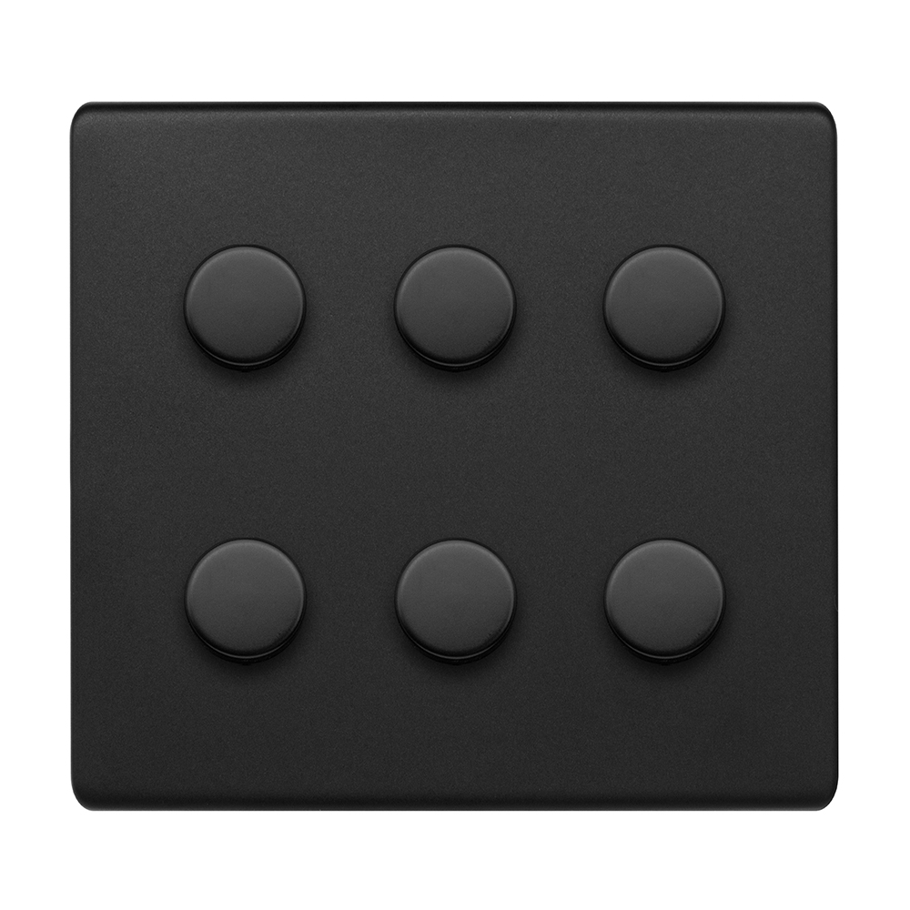 Soho Lighting Matt Black 6 Gang 2-Way Intelligent Dimmer 150W LED (300W Halogen/Incandescent) - Size: H 146mm x W 146mm