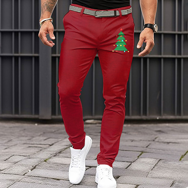 Christmas Men's Christmas tree Printed Pants Tree Fashion Casual Dress Zipper Pocket Mid Waist Party Dailywear Holiday Summer Spring Fall 3D Print Slim Fit Inelastic