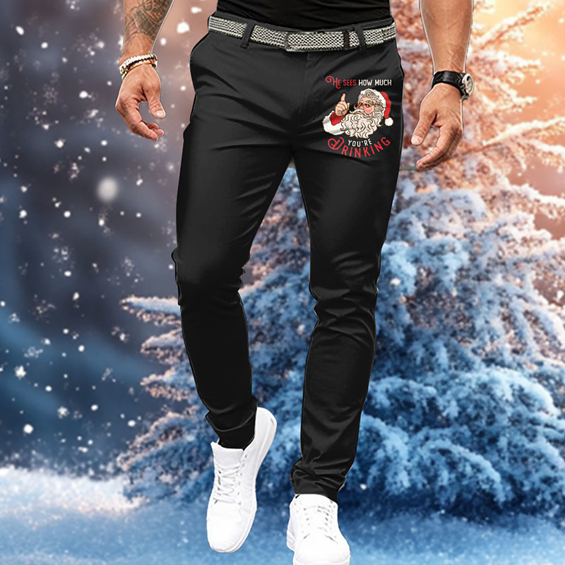 Christmas Men's Funny Christmas Printed Pants Santa Claus Fashion Casual Dress Zipper Pocket Mid Waist Party Dailywear Holiday Summer Spring Fall 3D Print Slim Fit Inelastic